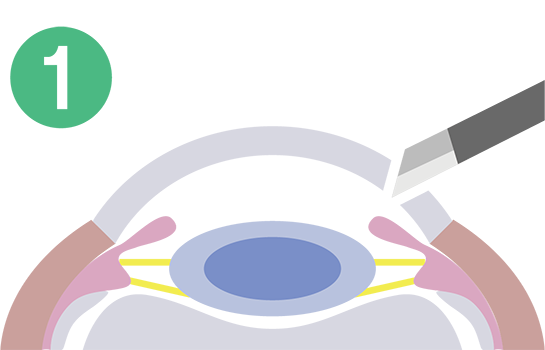 この手術は、低濃度笑気麻酔や目薬による麻酔のあと、数十分で終わり日帰りで行うことができます。